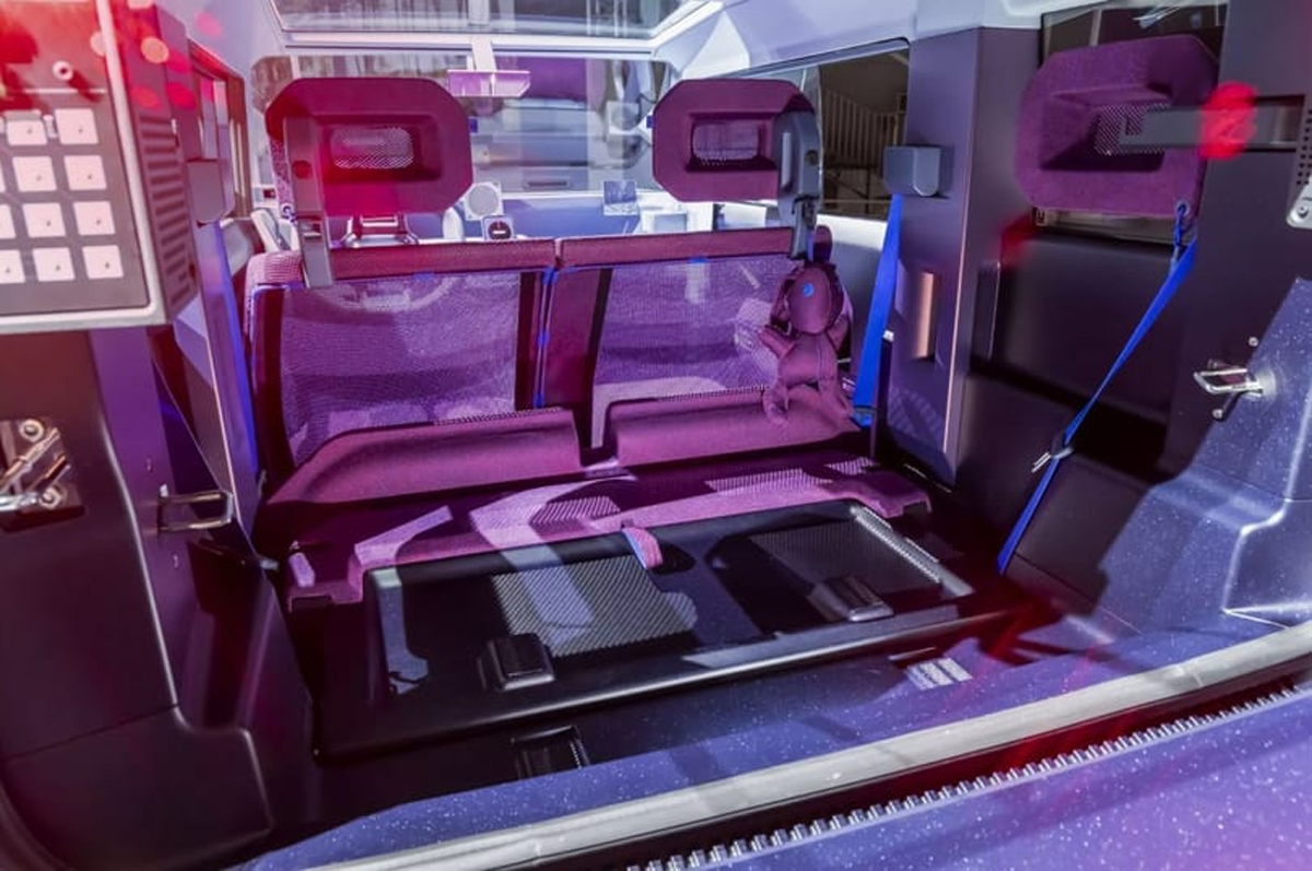 első ülés teljesen előre dönthető, hogy hozzáférhessünk a hátul elhelyezett tárgyakhoz. A minimalista belső tér a látható keretet hálós anyaggal ötvözi. Az utastérben 11 YouClip rögzítési pont is található a kiegészítők, például pohártartók, lámpák vagy kartámaszok számára.